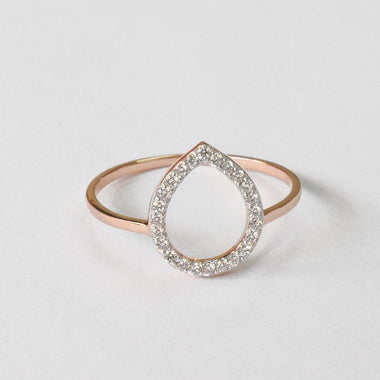 Diamond Ring 10k 14k 18k Solid Gold / Pear Outline Pave Diamond Ring / Promise Propose Ring / Minimal Gold Ring Anniversary Valentine Gift