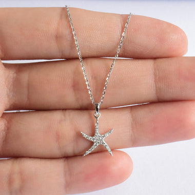 Diamond Starfish Necklace in 10K 14K 18K Gold