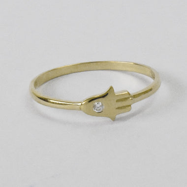Hamsa Diamond Ring / 10k 14k 18k Gold Hamsa Ring / Minimalist Diamond Ring / Stacking Ring / Wedding / Promise / Anniversary Ring