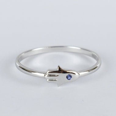 Hamsa Hand Ring / 10k 14k 18k Solid Gold Ring / Natural Blue Sapphire Ring / Hand of Fatima Ring / Protection Good Luck Minimalist Stacking