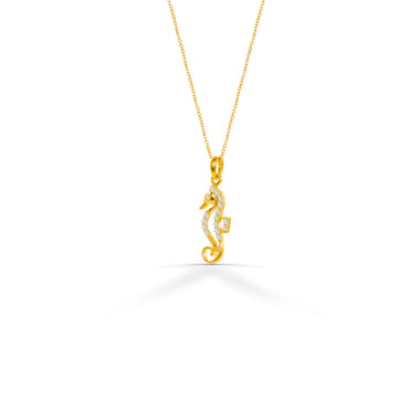 Natural Diamond Seahorse Charm Necklace in Solid Gold
