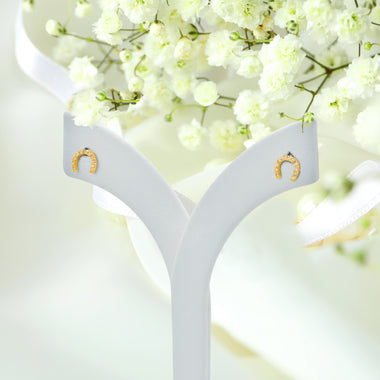 Diamond Horseshoe Lucky Stud Earrings in Solid Gold