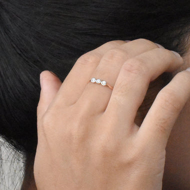 18K Yellow gold / Size 7 / Trio Diamond Ring / Bezel Setting Three Diamond Ring / Engagement Ring / Wedding Ring / NXDOJGD36/30